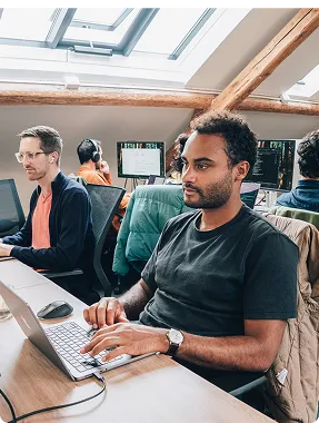Our offices are more than workspaces — they’re where ideas collide and teams come together. Visitors often say our headquarters feels like home, probably because we have the whole building! Cozy, productive, and designed for togetherness, with open co-working areas, quiet corners, private terraces, a nap room, and even a meme wall. Our spaces reflect how we work: collaborative, ambitious, and always human.